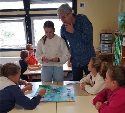 Dans le cadre d’un projet en SCIENCES et VIE de la TERRE (SVT), certains élèves de 3e du  collège DON BOSCO sont venus dans les classes de CM2, proposer des jeux autour du thème de l’eau. A cette occasion, les élèves de CM2 ont été sensibilisés aux problématiques environnementales.