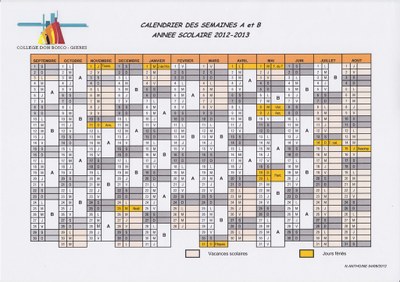Calendriers — Ecole et Collège privés Don Bosco - Gières - Isère