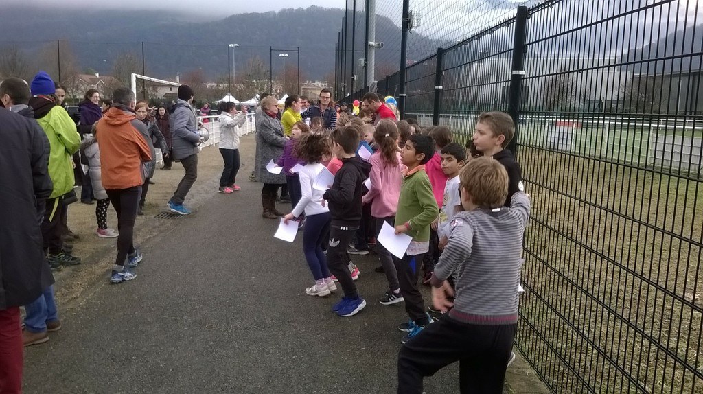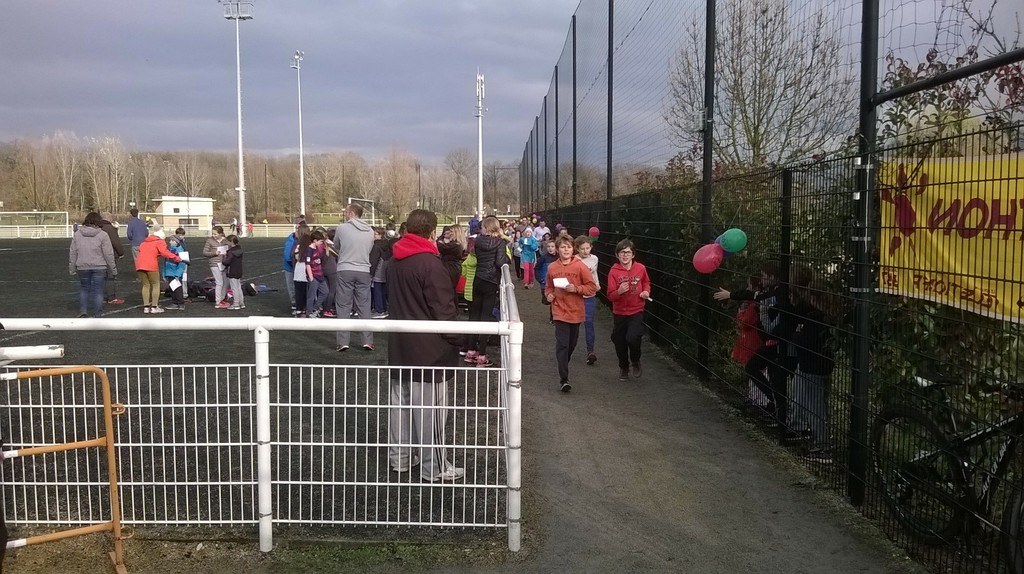 Ce vendredi 25 novembre, les élèves ont couru pour le téléthon. La pluie a cessé au début de la course et les grands comme les petits ont pu se dépasser et s'entraider. Un grand moment de partage et de solidarité. Bravo à tous et un grand merci au magasin Leclerc de St Martin d'Hères qui a fourni gracieusement l'eau ainsi qu'au Primeur de Gières et à l'APEL qui ont financé le goûter !